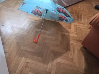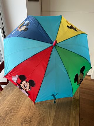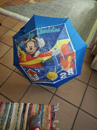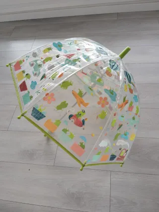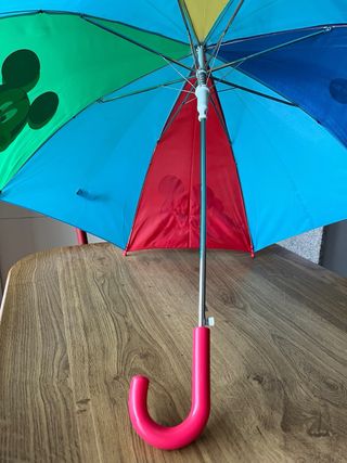 Paraguas de tela con colores vivos para niñ@s. Lo compré por internet pensado que era más grande y casi no lo hemos usado. Funciona perfectamente. Dispongo de dos paraguas iguales (2×14€) Creo que es adecuado para niñ@s de entre 2 y 5 años. Puedes ver las medidas en las fotos.