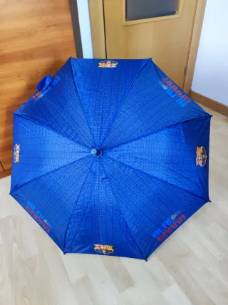 Vendo paraguas infantil del Barça, color azul. Abertura automática. Varillas reforzadas. Utilizado en 2 ocasiones.