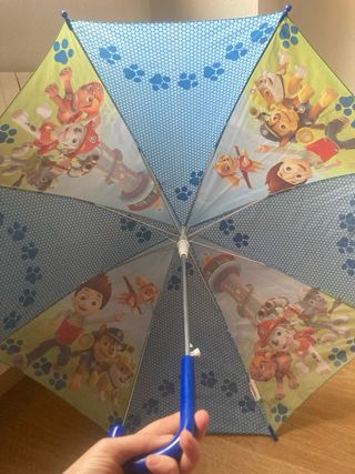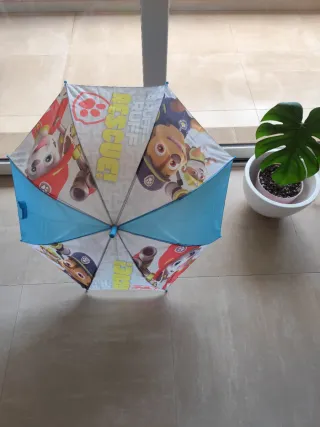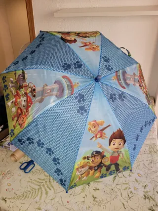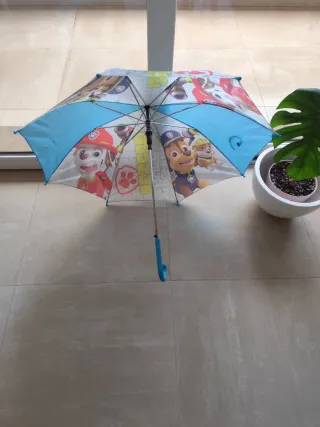 Paraguas infantil con un divertido diseño de La Patrulla Canina. De 85 cm de diámetro. Se abre de manera automática pulsando un botón. Esta peefecto. Sin agujeros ni descosidos, con las varillas perfectas.