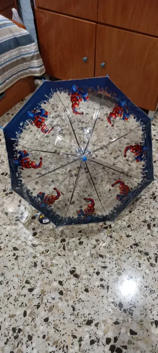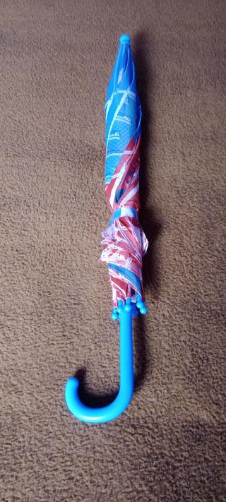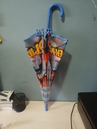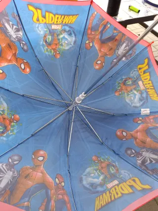 Paraguas infantil con diseño de Spiderman de Marvel. Ideal para los más pequeños. Apertura automática. - Diseño llamativo con Spiderman. - Mango curvo para fácil agarre. - Bola de la punta con el roce del uso como se aprecia en las fotos.