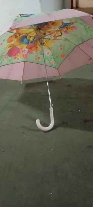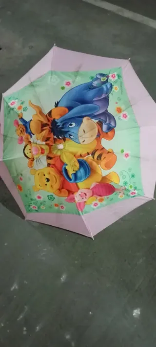 Paraguas infantil con un divertido diseño de Winnie the Pooh y sus amigos. - Personajes: Winnie the Pooh, Tigger, Piglet y Eeyore. - Diseño colorido y alegre.