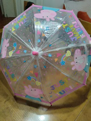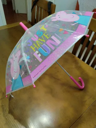 Paraguas transparente con divertidos dibujos de Peppa Pig y arcoíris. Ideal para los días de lluvia. - Diseño con personajes de Peppa Pig. - Estampado de arcoíris y estrellas. - Borde con detalles en rosa.