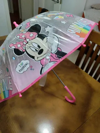 Paraguas transparente con divertidos dibujos de Minnie Mouse y arcoíris. Ideal para los días de lluvia. - Diseño con Minnie Mouse y arcoíris. - Material transparente.