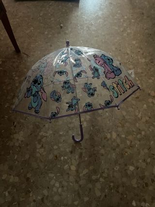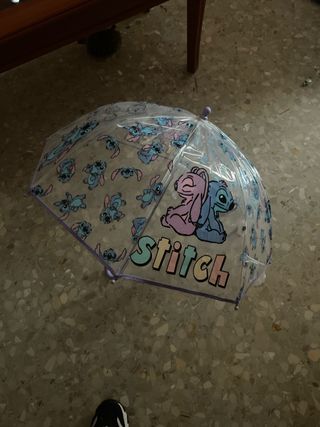 Paraguas transparente con un divertido diseño de Stitch, ideal para los más pequeños. Presenta a Stitch y Ángel en un estampado alegre. - Diseño transparente con personajes de Lilo & Stitch. - Detalles en tonos morados y multicolor.