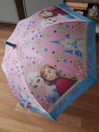 Paraguas con diseño de Frozen, perfecto para los días de lluvia. - Ilustraciones de los personajes de Frozen. - Diseño multicolor con detalles en rosa.