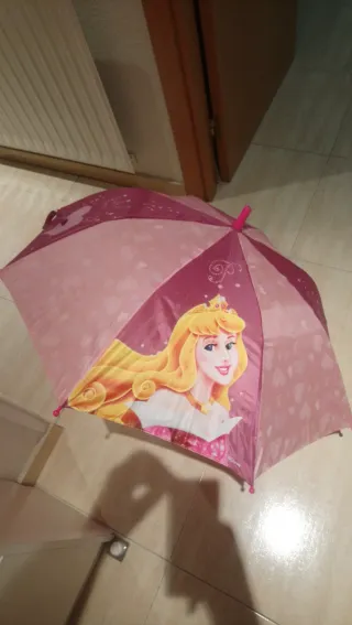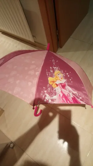 Paraguas infantil con diseño de la princesa Aurora de Disney. Perfecto para los días de lluvia. - Ilustración de la princesa Aurora. - Diseño con detalles de corazones y estrellas.
