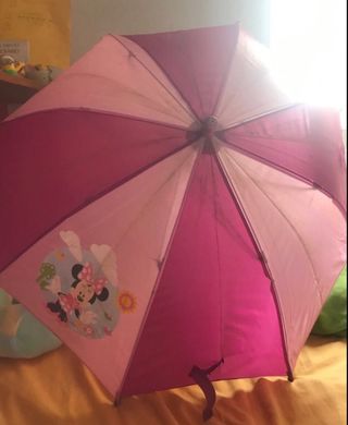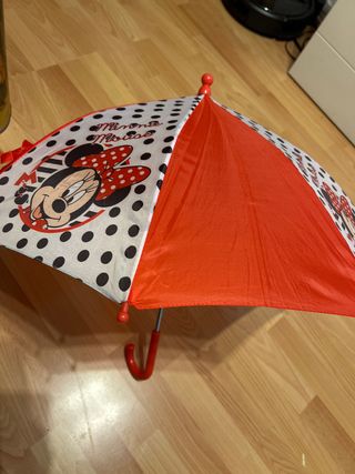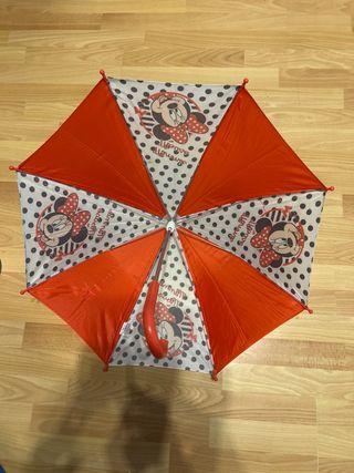 Paraguas infantil con el personaje de Minnie Mouse. - Diseño alegre y colorido. - Mango y puntas en color rojo.