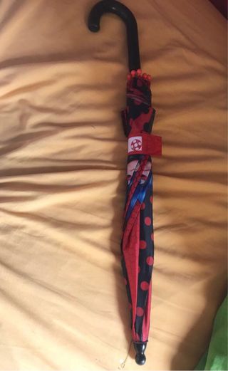 Paraguas con un divertido diseño. - Mango curvo negro. - Cierre con velcro. - Puntas decorativas rojas.