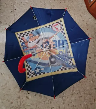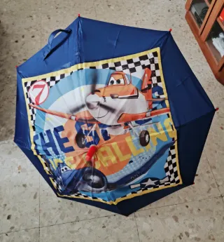 Paraguas para niños con diseño de Aviones de Disney. Con signos de uso pero perfectamente funcional, accionamiento por botón