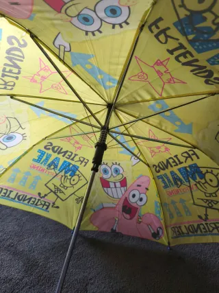 Paraguas infantil con diseño de Bob Esponja y Patricio. Está en buen estado. 55cm de largo