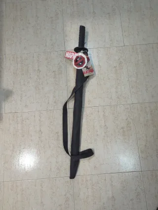 Paraguas con diseño inspirado en Deadpool, de la marca Marvel. - Mango con forma de katana. - Incluye funda. - Correa de transporte.