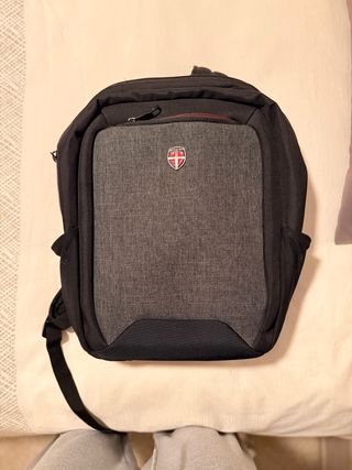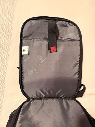 Mochila de la marca Swissgear con un diseño moderno y funcional. Sin usar , la vendo por q fue un regalo y me parece un poc grande - Compartimento principal espacioso. - Bolsillos laterales para botellas o paraguas. - Asa superior reforzada. - Correas de hombro acolchadas y ajustables.