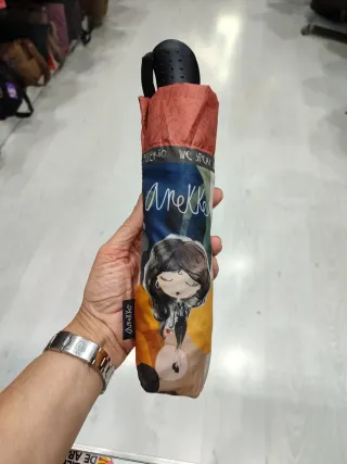 Paraguas automático con un diseño único de Anekke. - Cierre automático. - Ilustración de una chica con estilo. - Mango ergonómico. No negociable . Nuevos y de esta temporada.