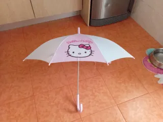 Paraguas con el adorable diseño de Hello Kitty. - Diseño de Hello Kitty con lazo rosa. - Combinación de colores blanco y rosa.