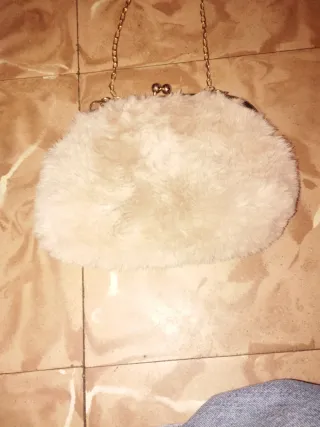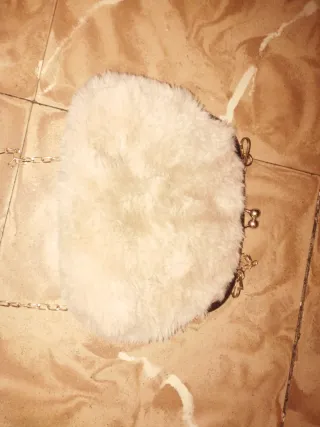 Bolso peludo blanco y dorado