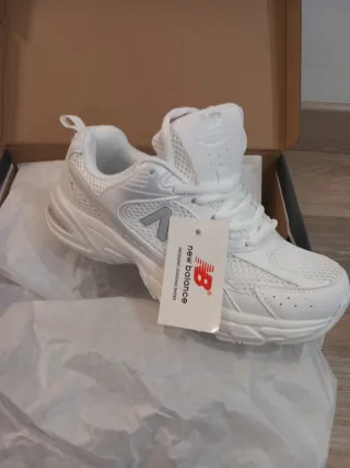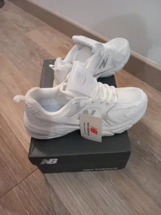 Zapatillas deportivas New Balance en color blanco, perfectas para correr o para el día a día. Son cómodas y ligeras. - Diseño moderno y deportivo. - Parte superior de malla transpirable. - Suela con buena amortiguación.