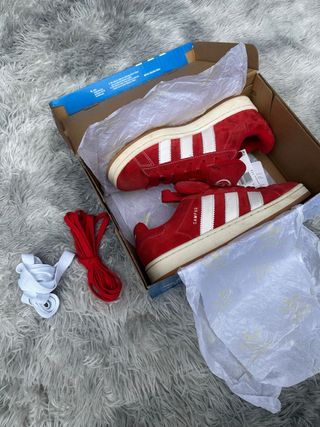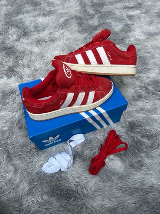 🔴Zapatillas Adidas Campus rojas originales 📏Talla: 40 ⭐️Muy buen estado ✔️Modelo Campus clásico muy buscado ✔️Color rojo vibrante con tres bandas blancas ✔️Exterior en ante/suede de alta calidad ✔️Suela color crema estilo retro ✔️Incluye cordones rojos y blancos extra ✔️Perfectas para outfit streetwear/casual 👟 Detalles: Logo trefoil en la lengüeta “Campus” en el lateral Estilo vintage atemporal Muy cómodas para el día a día 📦 Se entregan con su caja original