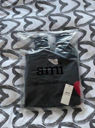 Sudadera de AMI Paris con un diseño llamativo. - Detalle de corazón rojo. - Logo de AMI Paris y Alexandre Mattiussi.