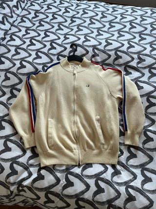 Sudadera con cremallera completa y detalles deportivos. - Diseño de corte clásico. - Rayas de colores en las mangas. - Bolsillos laterales. - Cuello alto.