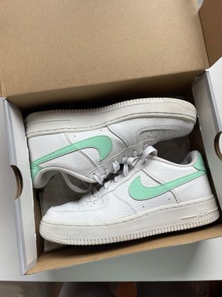 Caja original para zapatillas Nike Air Force 1. - Color turquesa. - Diseño clásico de la marca.