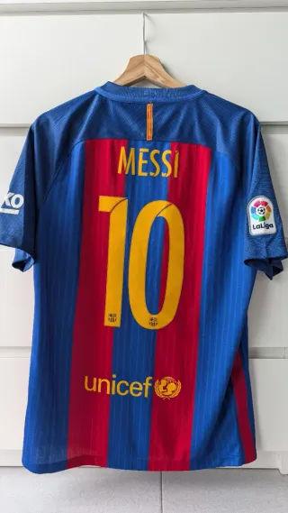 🌟 Camiseta FC Barcelona 2016 - MESSI #10 | Talla M | NUEVA con etiquetas 🌟 Vendo esta icónica camiseta del Barça de la temporada 2016 con el dorsal 10 de Leo Messi. Una auténtica joya muy difícil de encontrar hoy en día en este estado y versión sin publicidad. Talla: M Estado: 100% NUEVA a estrenar. Aún conserva sus etiquetas originales. Nunca se ha usado. Para verdaderos fans del mejor jugador de la historia. 🐐🔵🔴 Si tienes dudas o quieres más fotos, ¡escríbeme! Para más tranquilidad mi perfil TOP y todas mis valoraciones ⭐ ⭐ ⭐ ⭐ ⭐.
