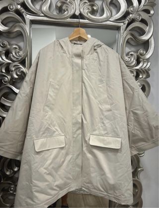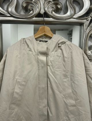 Chaquetón capa beige con capucha