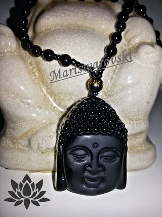 Collar buda de obsidiana. La obsidiana es una piedra muy protectora que forma un escudo en contra de la negatividad absorbiendo las energías negativas del entorno.Bloquea los ataques psíquicos y aparta las influencias espirituales negativas. - Esta piedra almacena mucha energía, por lo que debe limpiarse con frecuencia, pasándola sobre humo de incienso y y volver a activarla después, poniéndola a la luz de la luna en fase creciente.