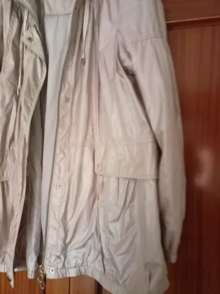 Parka ligera de color beige, ideal para entretiempo. Presenta un diseño moderno y funcional. - Cierre de cremallera y botones a presión. - Bolsillos frontales con solapa. - Capucha ajustable con cordón. - Forro interior de malla transpirable.