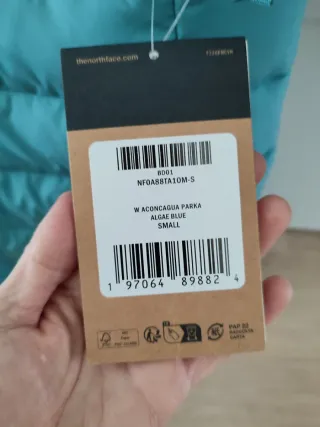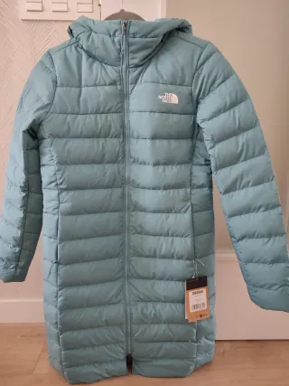 Parka Aconcagua 100% original. larga The North Face en color azul claro. Tela WindWall con plumón reciclado de 600 cuin y aislamiento 50/50 que protege del viento y el frío en ciudad, campo y montaña. Su precio en tienda 240€ - Diseño acolchado. - Capucha integrada. - Cierre de cremallera frontal.