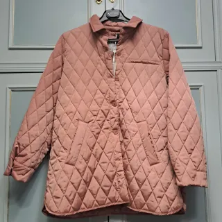 Parka acolchada de la marca MDM en color rosa. Pone talla 48 en la etiqueta y 42 en la etiqueta exterior. Es en realidad una 42-44. Diseño con cuello camisero y cierre de botones. - Acolchado de rombos. - Bolsillo de solapa en el pecho. - Dos bolsillos inferiores. - Puños abotonados.