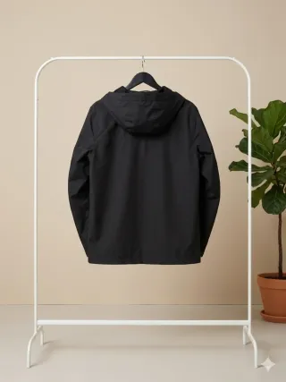 Parka negra con capucha. - Cierre de cremallera. - Bolsillos laterales.