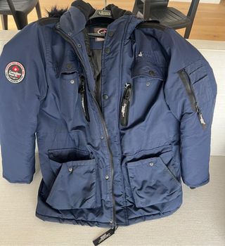 Como se puede apreciar en las fotos, es un abrigo de muy buena calidad con múltiples bolsillos y detalles muy buenos. Solo tiene 1 uso. Está literalmente nueva. Talla como una S de mujer a XS de hombre. También la tengo en M de hombre a L de mujer y otros modelos.