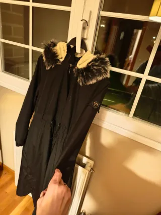 Parka larga de color negro, ideal para el frío. Nuevo con etiqueta 🏷️ me costó 89€ la compré hace 1 mes el 8 de Febrero y he perdido el ticket. Se la compré a mí mujer cómo regalo de San Valentín. - Capucha con detalle de pelo. - Cintura ajustable con cordón. - Cierre de cremallera. - Bolsillos laterales.