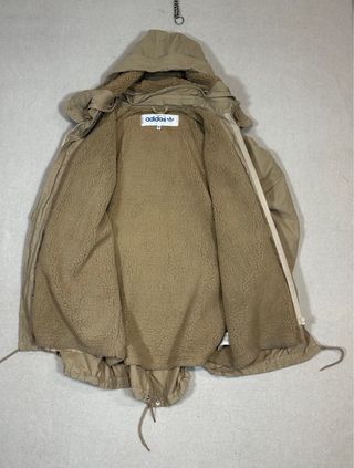 Parka Adidas Originals en color beige, con forro interior de borreguito. - Capucha con forro. - Cierre de cremallera y botones. - Bolsillos frontales. - Cordón ajustable en cintura y bajo.