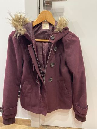 Parka berenjena con capucha y pelo