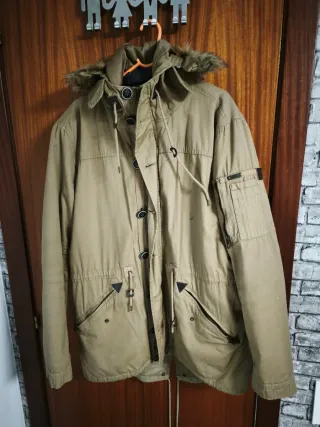Parka de la marca Springfield en color verde caqui. - Capucha con cordones ajustables. - Cierre de cremallera y botones. - Bolsillos frontales con cremallera. - Bolsillos inferiores con solapa. - Pelo desmontable en capucha. - Con relleno. Ideal para lluvia y frío. - Largo medido desde la mitad de la espalda 75 cm. - Pone talla S pero es casi una M.