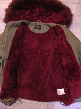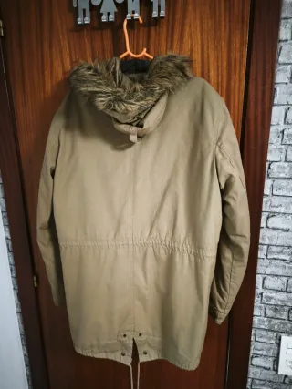 Chaqueta tipo parka de Pull and Bear. Es holgada y se uso dos veces - Cuello de polipiel. - Cintura ajustable con cordón. - Bolsillos delanteros con solapa.
