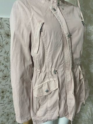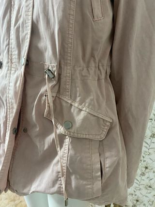 Parka de estilo casual con detalles funcionales. - Cierre de cremallera y botones a presión. - Bolsillos frontales con solapa y botón. - Cordón ajustable en la cintura para un mejor ajuste. - Puños con botón. - Algodón en rosa envejecido