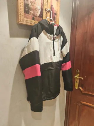 Parka deportiva negra y rosa