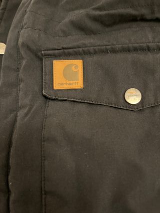 Chaqueta larga de la marca Carhartt en color negro. Se encuentra en perfecto estado, como nueva. - Diseño moderno y funcional. - Cierre frontal con cremallera y botones. - Capucha con detalle de pelo sintético.