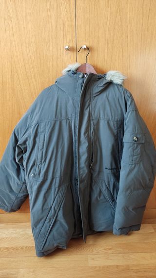 Abrigo de plumas de invierno marca Columbia en color gris cuenta con capucha y detalles de pelo. - Doble cremallera con cierre frontal. - Dos bolsillos superiores con solapa. - Dos bolsillos inferiores con solapa. - Puños ajustables. Chaqueta en perfecto estado, abriga mucho, es muy calentita. Talla grande como es costumbre en Columbia. #Cazadora. abrigo, parka, plumas