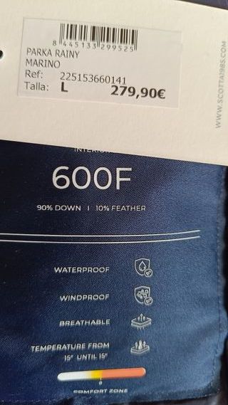 Scotta, 90% plumón 10% pluma, impermeable