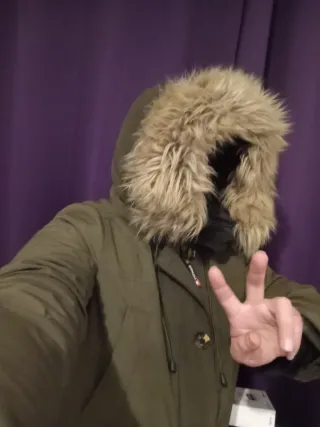 Abrigo impermeable de estilo parka. -Plumas interior acolchado desmontable - Diseño con capucha y pelo. - Cierre de cremallera y botones. - Bolsillos frontales con solapa y cremallera. Venta en persona