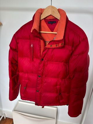 Preciosa chaqueta acolchada de plumas dela marca Tommy Hilfiger, ideal para el invierno. Es de color rojo intenso y luce impecable. - Diseño clásico y atemporal. - Acolchado cálido y confortable. - Perfecta para mantenerte abrigado. Yo mido 1.80 m y peso 70 kg., para que te hagas idea. Está en muy buen estado, pero habría que lavarla, ya que lleva mucho tiempo en el armario. Más cosas en mi perfil.