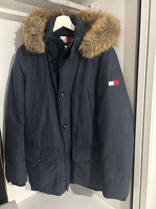 Parka de plumas Tommy Hilfiger en color azul. Solo se ha puesto 2 veces ya que me queda un poco grande. Es original. Nada de imitacion Abriga muchisimo. Se puede ver y probar