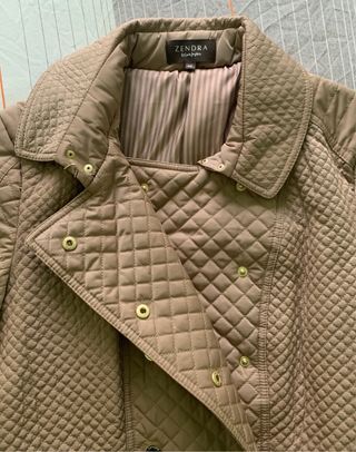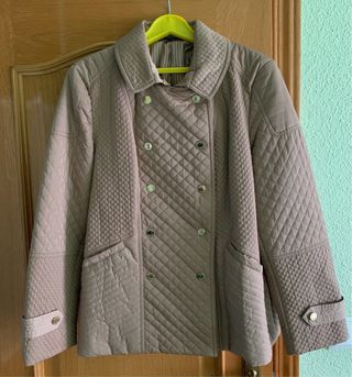 Preciosa parka acolchada de color beige. Es una prenda muy estilosa y abrigada, ideal para los días más frescos. - Diseño de doble botonadura. - Acolchado con diseño de rombos. - Bolsillos laterales. - Manga larga. Talla 48. Marca Zendra (de El Corte Inglés).