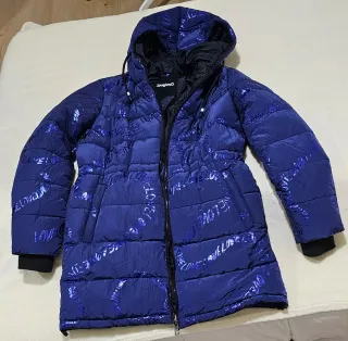 Parka larga con capucha, ideal para el frío. Tiene un solo uso. - Cierre de cremallera. - Bolsillos frontales con cremallera. - Diseño acolchado. Tiene un pequeño descocido en la lengüeta interior que no se ve cerrando la cremallera.( Última foto)