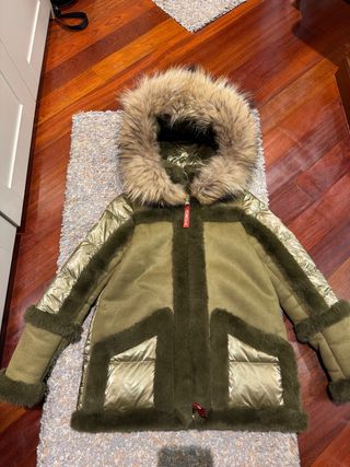 ***Hay que cambiar la cremallera**** Chaqueta tipo parka con forro interior de borreguito y capucha con pelo. - Cierre de cremallera y botones a presión. - Bolsillos frontales con solapa y botones. - Puños ajustables con botones. - Detalle de cremalleras decorativas.