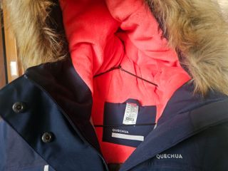 Parka Quechua nh900 para montaña,impermeable para niños, ideal para protegerse del frío y la lluvia. - Capucha con pelo sintético. - Forro interior de color rojo. - Cierre de cremallera y botones. - Bolsillos frontales con solapa y botón. - Practicamente nueva, se usado dos veces