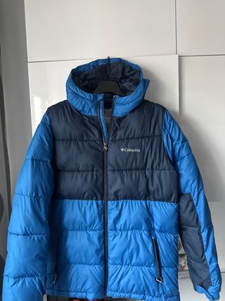 Parka acolchada de la marca Columbia para niño, con un diseño bicolor en azul y negro. - Capucha integrada. - Cierre de cremallera frontal. - Bolsillos laterales con cremallera. - Detalle de tecnología Omni-Heat en la manga.
